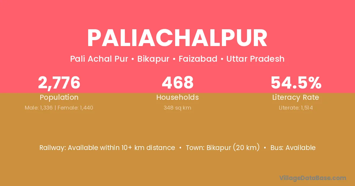 Bikapur (20 km) is the nearest town to Paliachalpur village for major economic activities and is located approximately 20 km away.