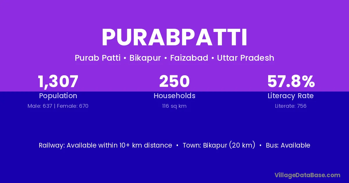 Bikapur (20 km) is the nearest town to Purabpatti village for major economic activities and is located approximately 20 km away.