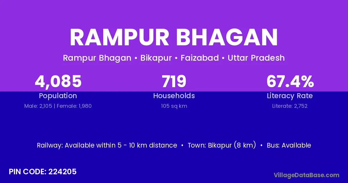 Bikapur (8 km) is the nearest town to Rampur Bhagan village for major economic activities and is located approximately 8 km away.