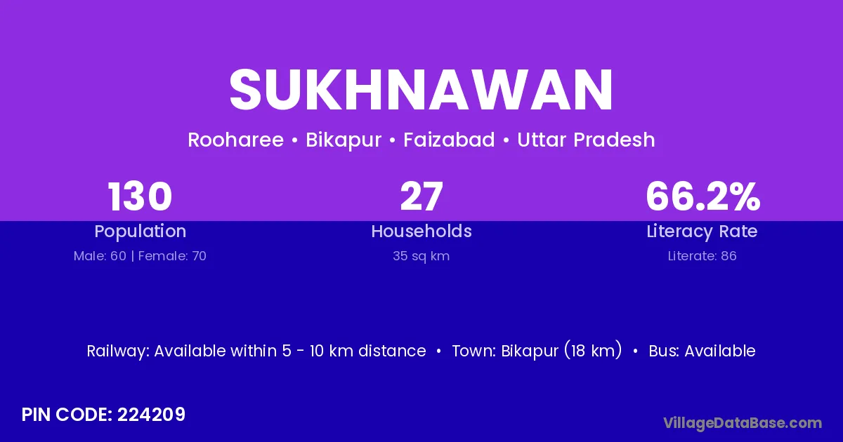 Bikapur (18 km) is the nearest town to Sukhnawan village for major economic activities and is located approximately 18 km away.