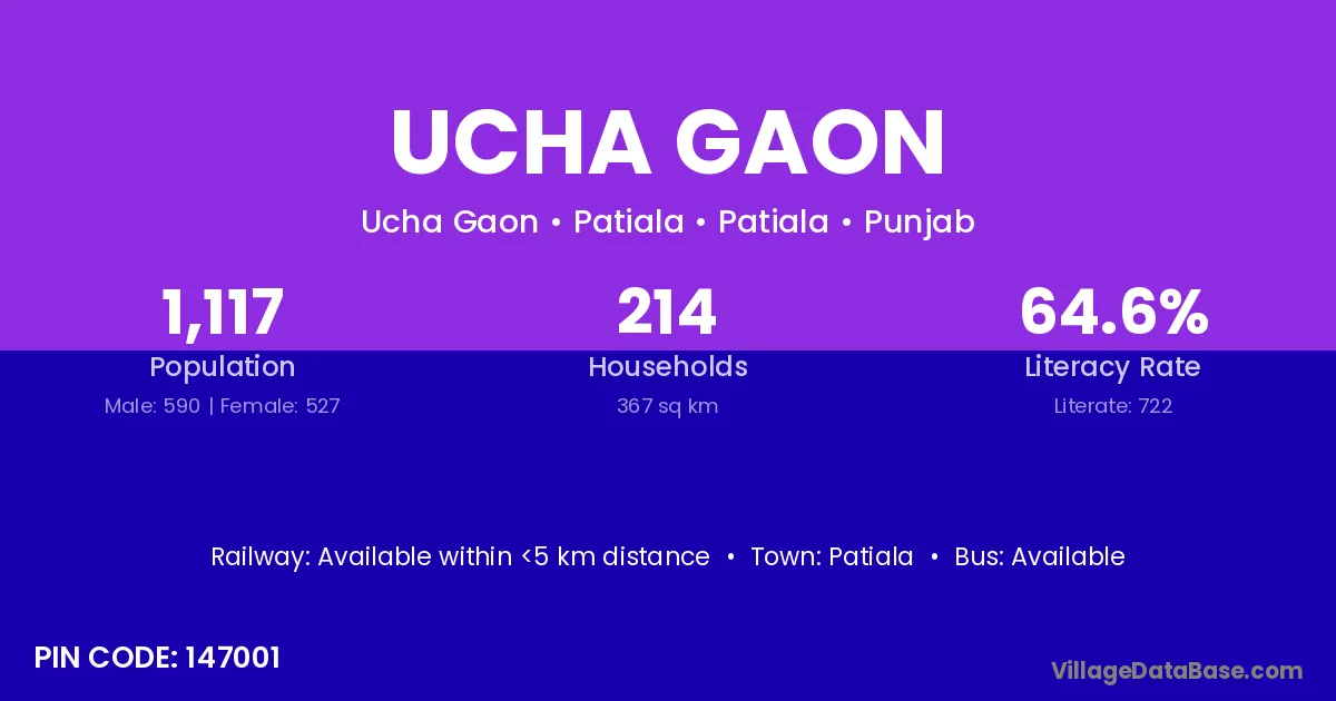 Ucha Gaon village has a total population of 1,291 people, of which 649 are males and 642 are females.