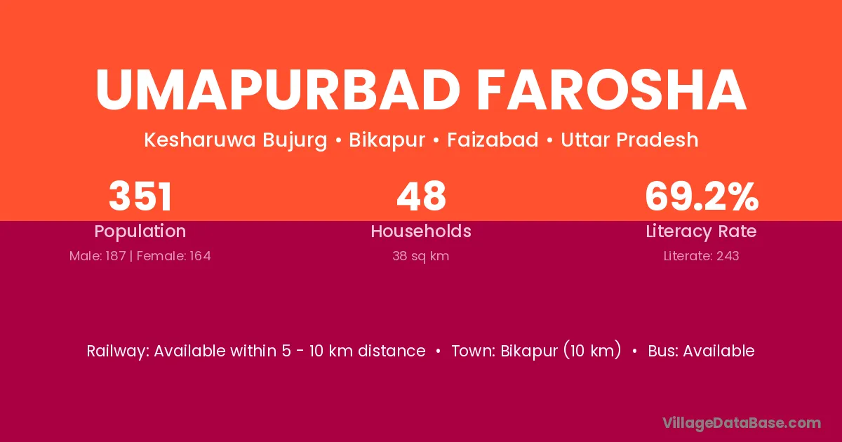 Bikapur (10 km) is the nearest town to Umapurbad Farosha village for major economic activities and is located approximately 10 km away.