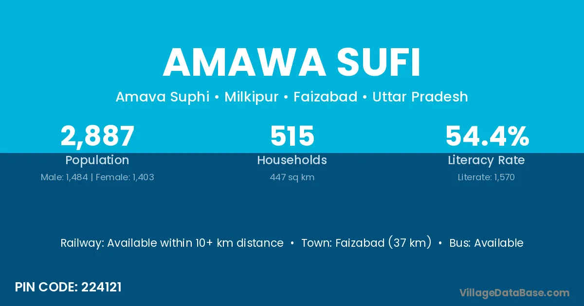 Faizabad (37 km) is the nearest town to Amawa Sufi village for major economic activities and is located approximately 37 km away.