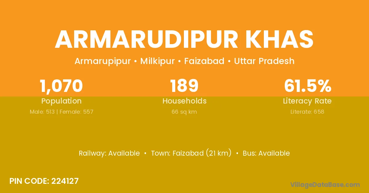 Faizabad (21 km) is the nearest town to Armarudipur Khas village for major economic activities and is located approximately 21 km away.