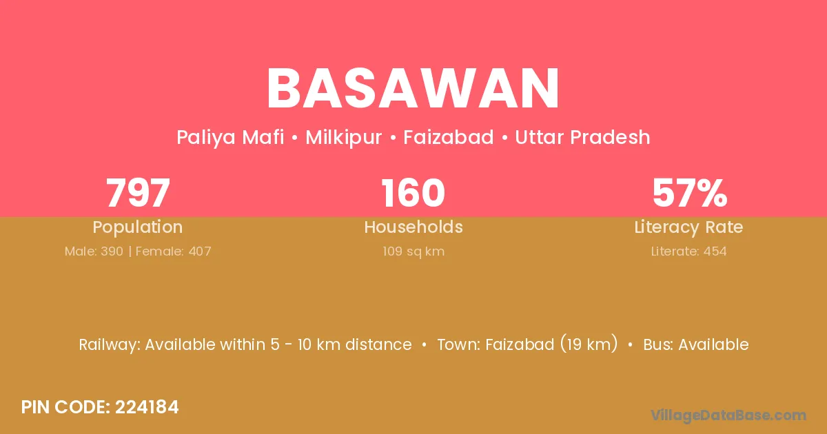 Faizabad (19 km) is the nearest town to Basawan village for major economic activities and is located approximately 19 km away.