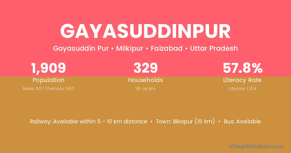 Bikapur (15 km) is the nearest town to Gayasuddinpur village for major economic activities and is located approximately 15 km away.