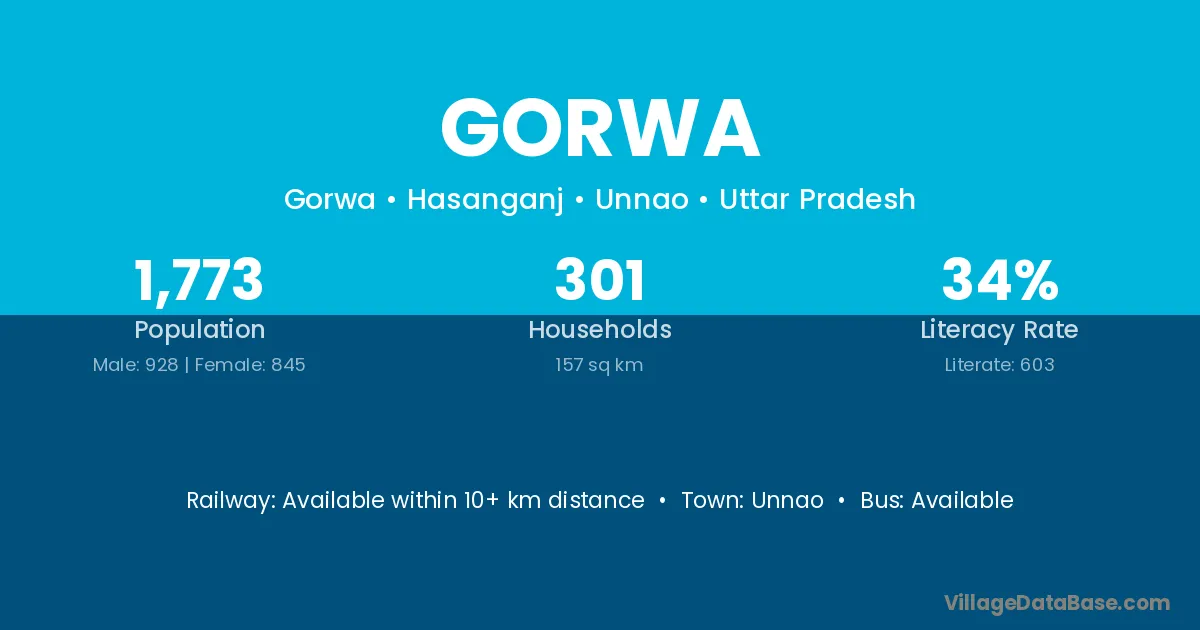 Faizabad (30 km) is the nearest town to Gorwa village for major economic activities and is located approximately 30 km away.