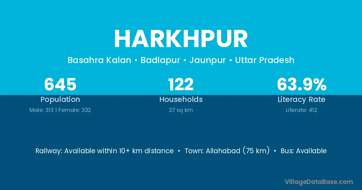 Rudauli (8 km) is the nearest town to Harkhpur village for major economic activities and is located approximately 8 km away.