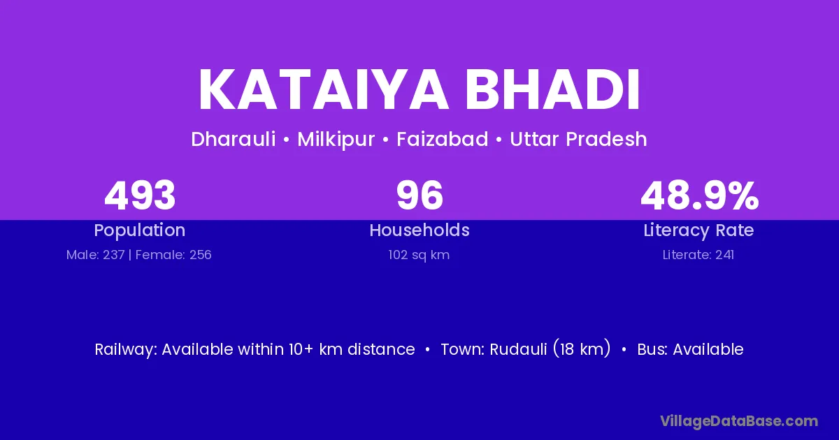 Kataiya Bhadi village has a total population of 493 people, of which 237 are males and 256 are females.