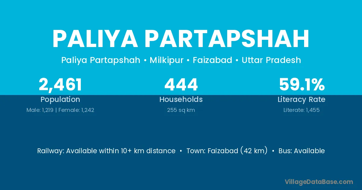 Faizabad (42 km) is the nearest town to Paliya Partapshah village for major economic activities and is located approximately 42 km away.