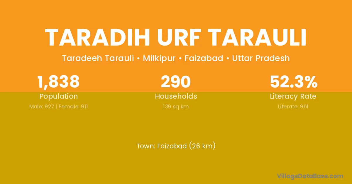 Taradih Urf Tarauli village has a total population of 1,838 people, of which 927 are males and 911 are females.