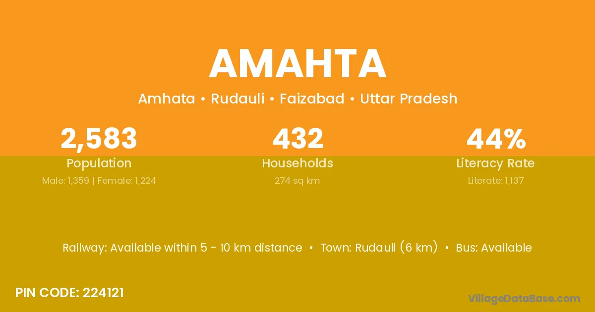 Rudauli (6 km) is the nearest town to Amahta village for major economic activities and is located approximately 6 km away.