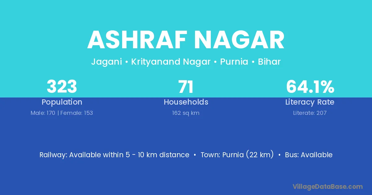 Rudauli (20 km) is the nearest town to Ashraf Nagar village for major economic activities and is located approximately 20 km away.