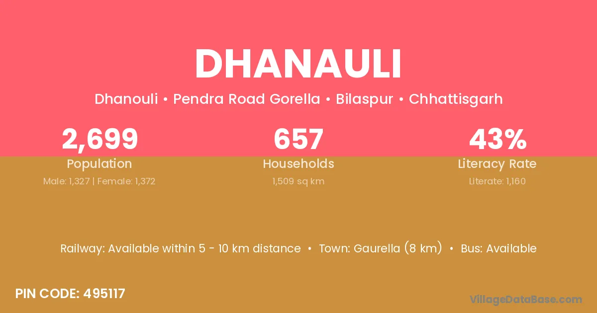 The literacy rate of Dhanauli village is 38.63%. Male literacy stands at 46.82% and female literacy at 29.97%.