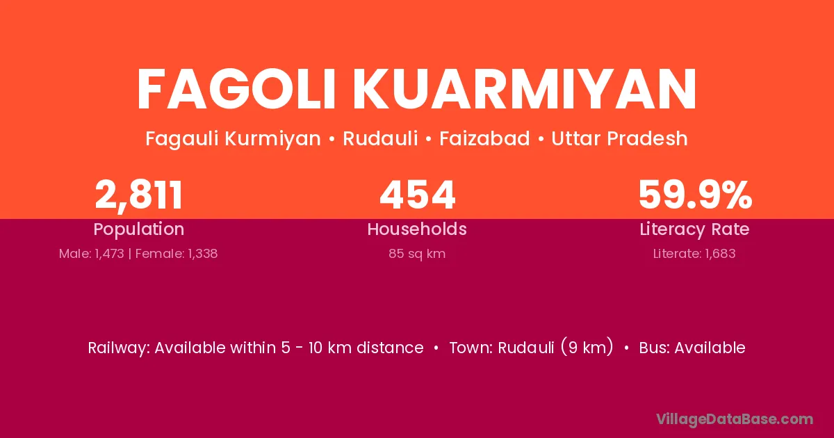 Rudauli (9 km) is the nearest town to Fagoli Kuarmiyan village for major economic activities and is located approximately 9 km away.