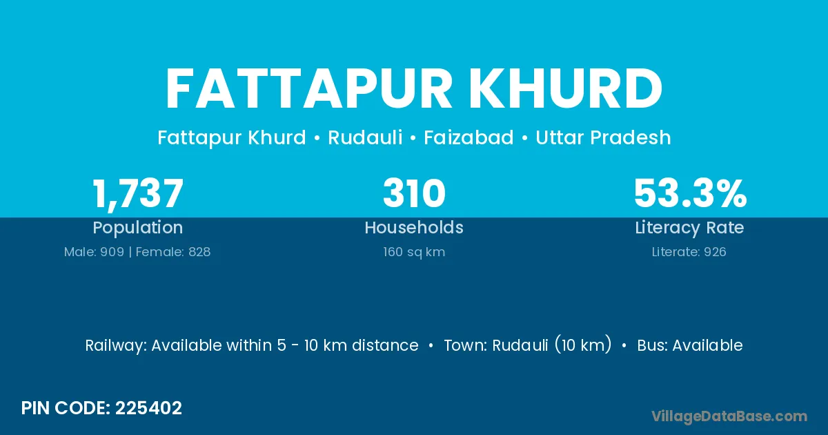 Rudauli (10 km) is the nearest town to Fattapur Khurd village for major economic activities and is located approximately 10 km away.