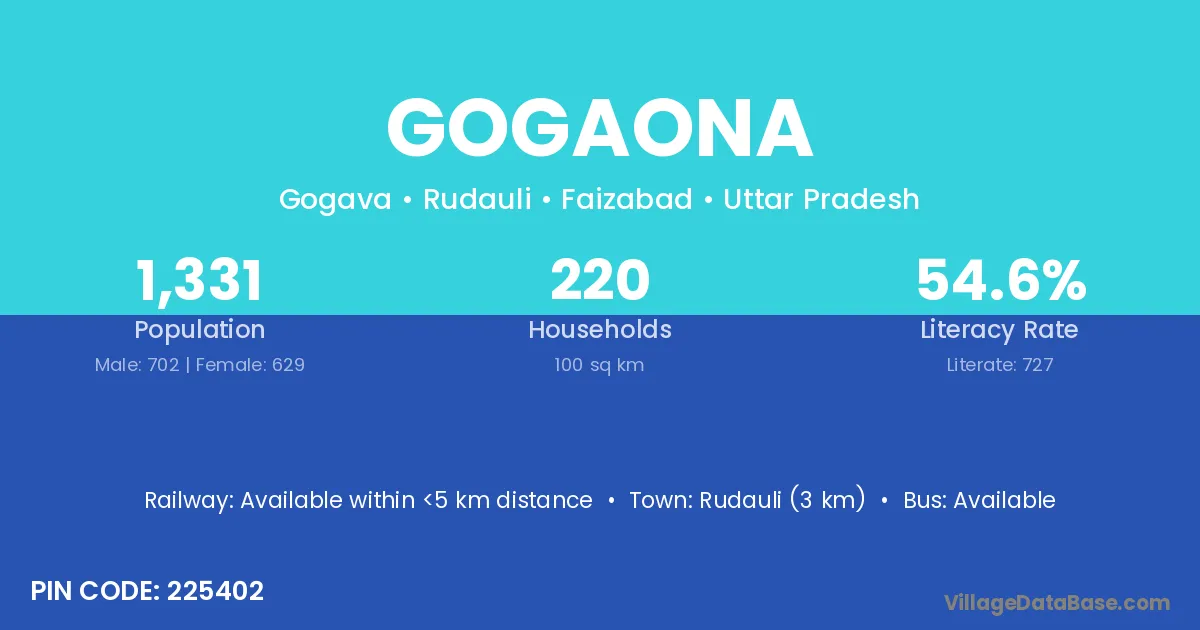 Rudauli (3 km) is the nearest town to Gogaona village for major economic activities and is located approximately 3 km away.