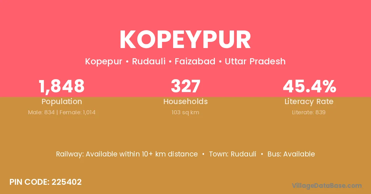 Rudauli is the nearest town to Kopeypur village for major economic activities