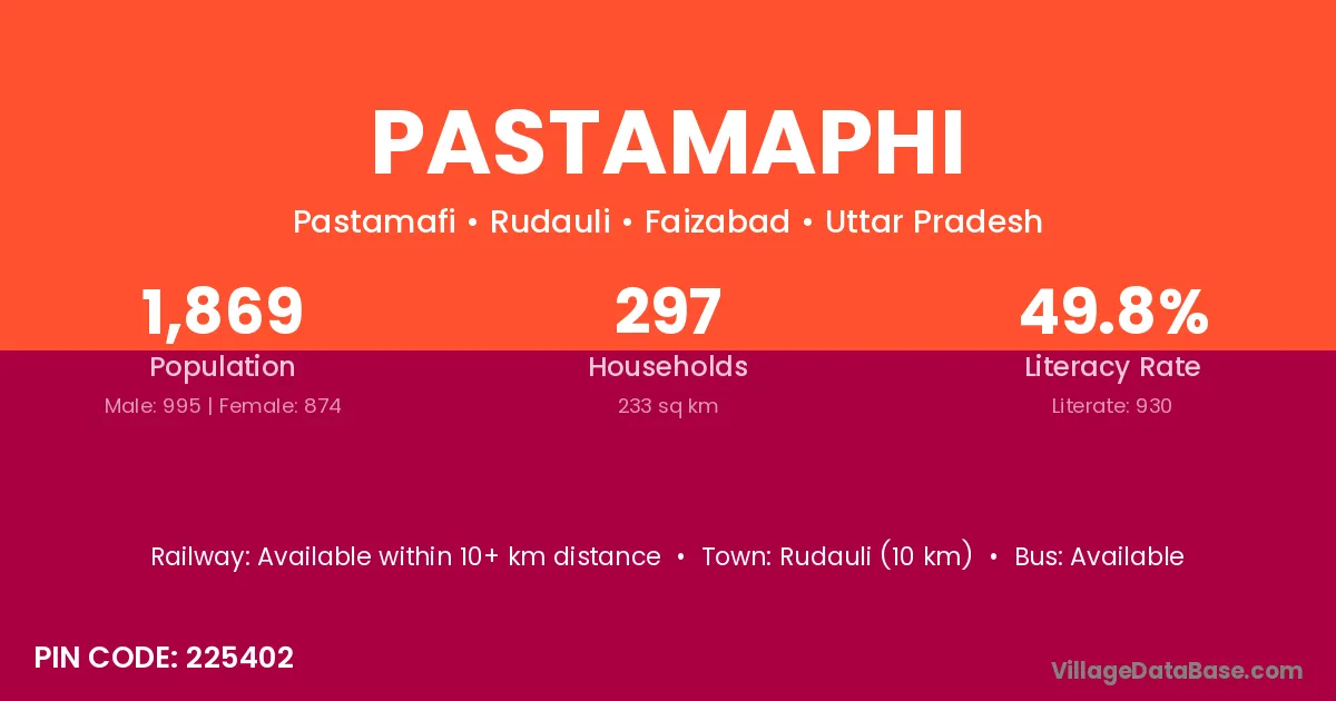 Rudauli (10 km) is the nearest town to Pastamaphi village for major economic activities and is located approximately 10 km away.