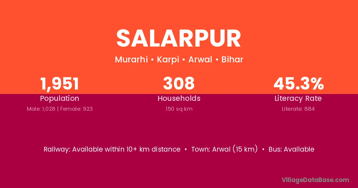 The literacy rate of Salarpur village is 44.67%. Male literacy stands at 59.00% and female literacy at 29.90%.