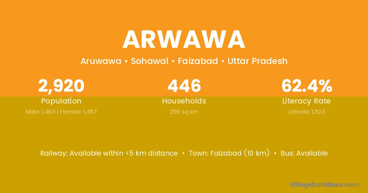 Faizabad (10 km) is the nearest town to Arwawa village for major economic activities and is located approximately 10 km away.