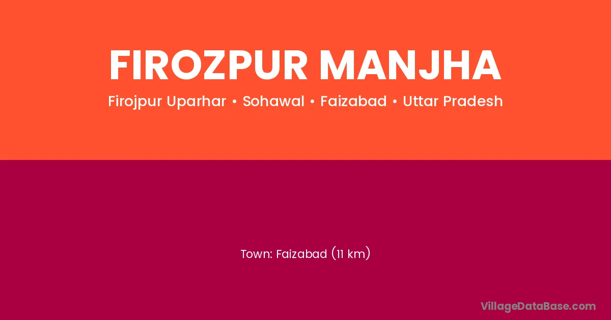 Faizabad (11 km) is the nearest town to Firozpur Manjha village for major economic activities and is located approximately 11 km away.