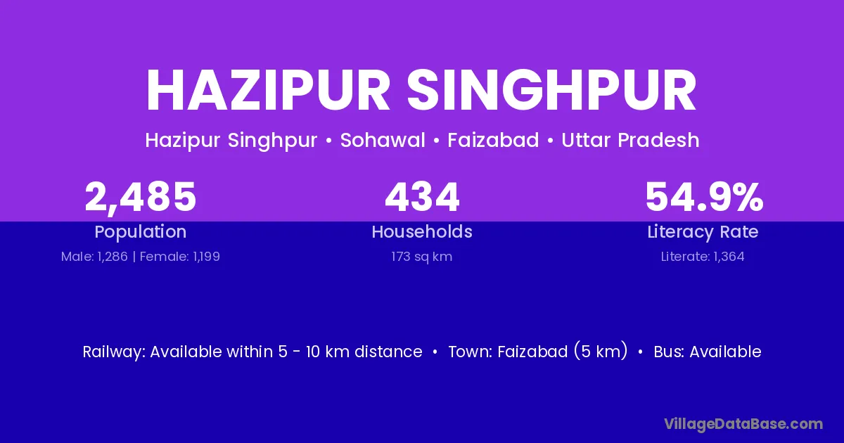 Faizabad (5 km) is the nearest town to Hazipur Singhpur village for major economic activities and is located approximately 5 km away.