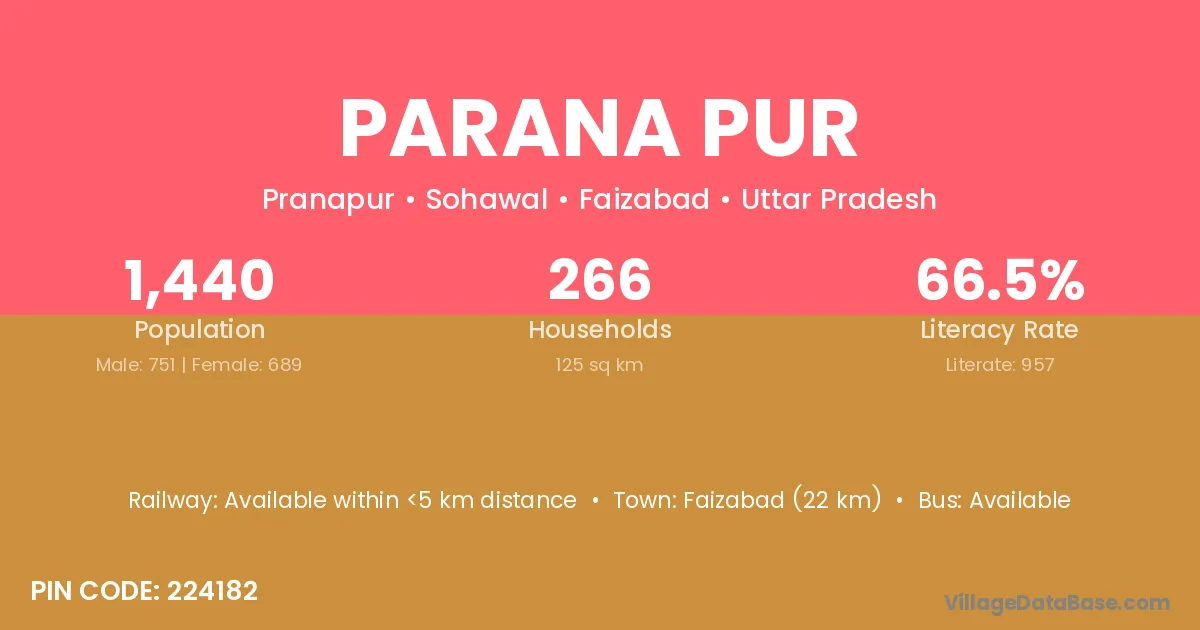 Faizabad (22 km) is the nearest town to Parana Pur village for major economic activities and is located approximately 22 km away.