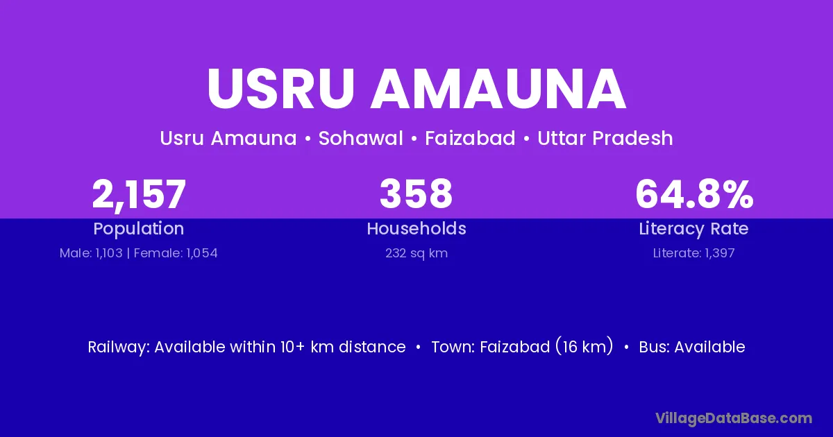 Faizabad (16 km) is the nearest town to Usru Amauna village for major economic activities and is located approximately 16 km away.
