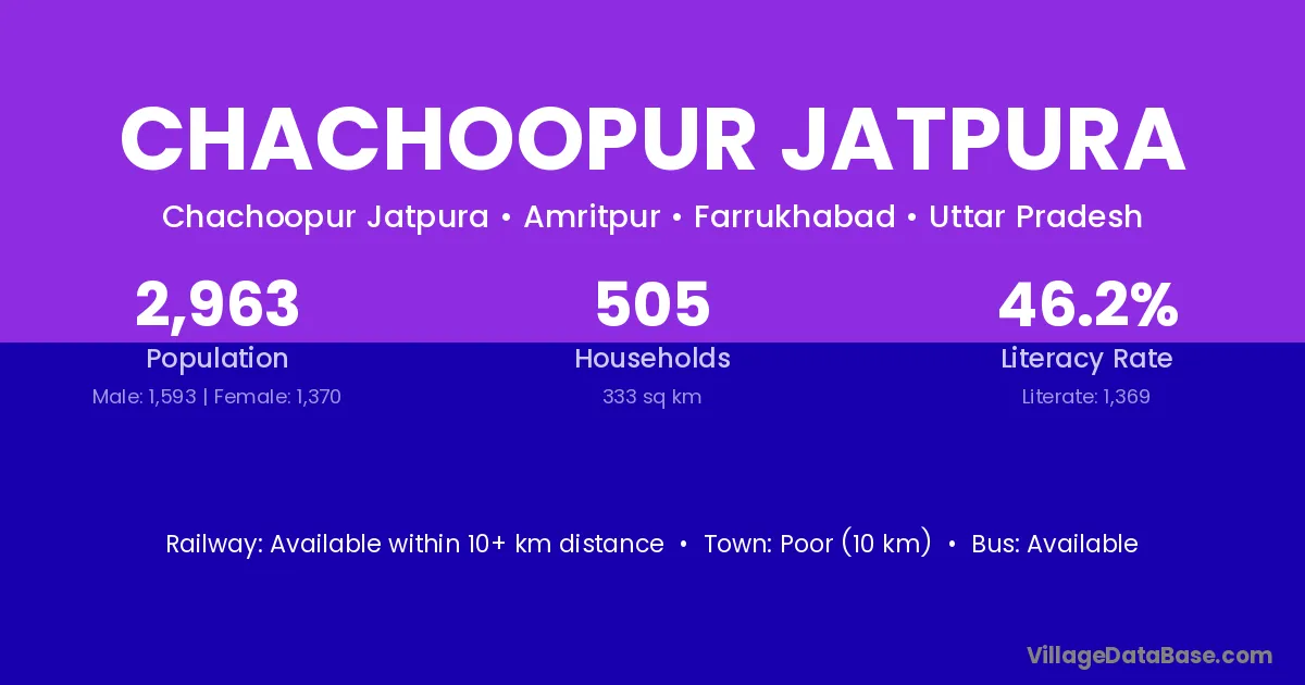Poor (10 km) is the nearest town to Chachoopur Jatpura village for major economic activities and is located approximately 10 km away.