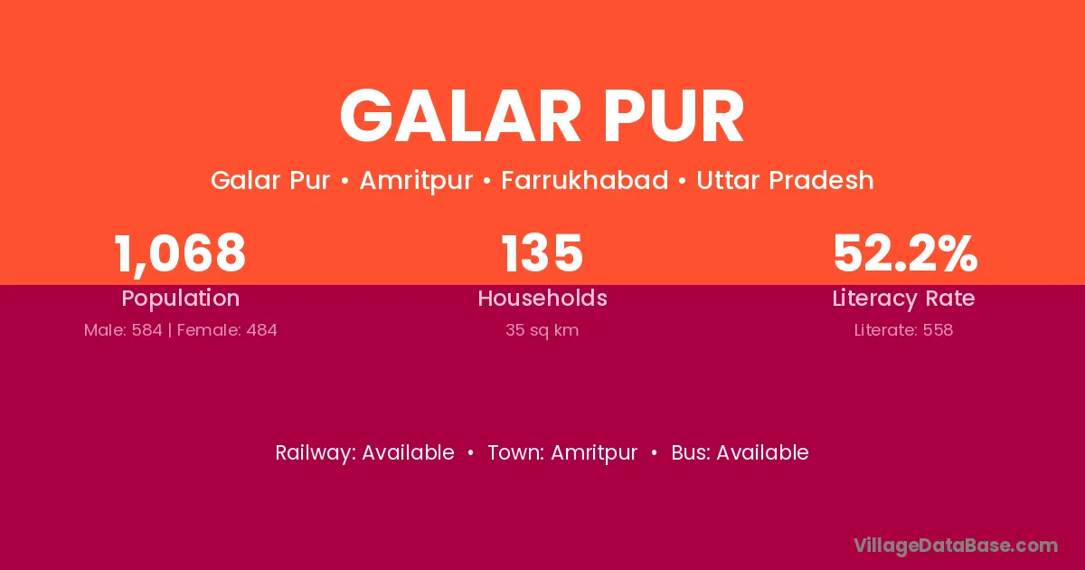 Galar Pur village has a total population of 1,068 people, of which 584 are males and 484 are females.
