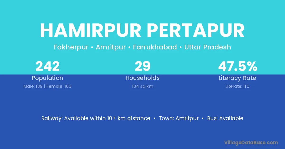 Hamirpur Pertapur village has a total population of 242 people, of which 139 are males and 103 are females.