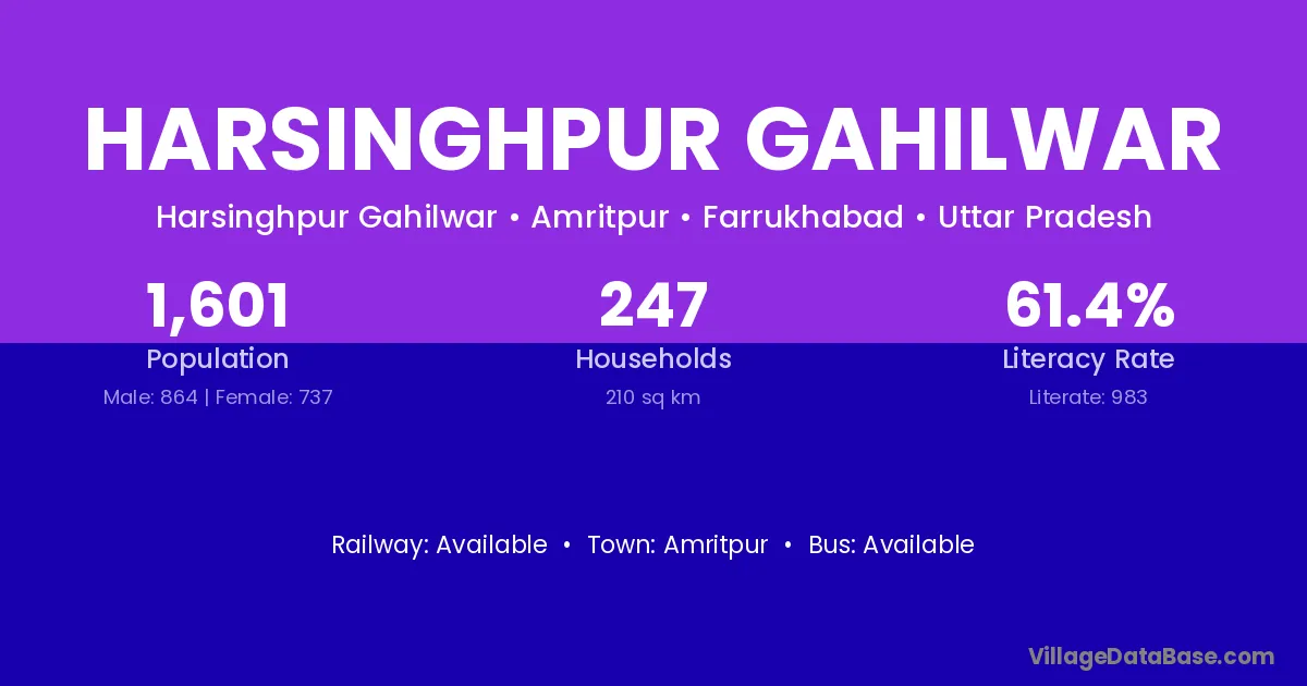 Harsinghpur Gahilwar village has a total population of 1,601 people, of which 864 are males and 737 are females.