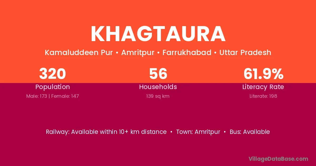 Khagtaura village has a total population of 320 people, of which 173 are males and 147 are females.