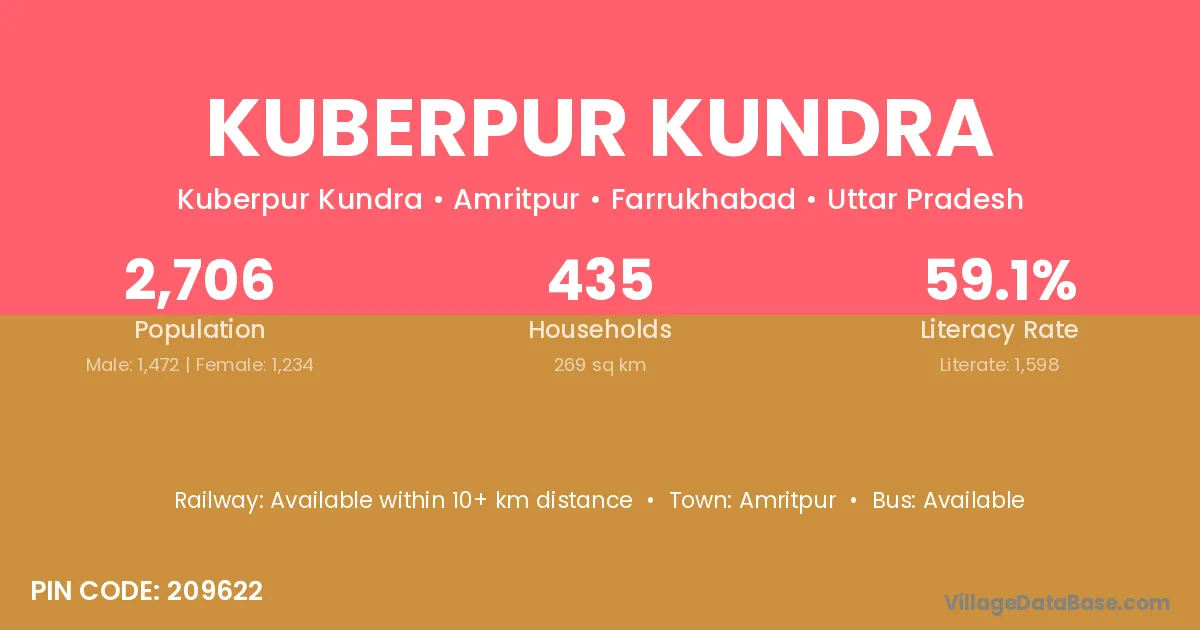 Kuberpur Kundra village has a total population of 2,706 people, of which 1,472 are males and 1,234 are females.