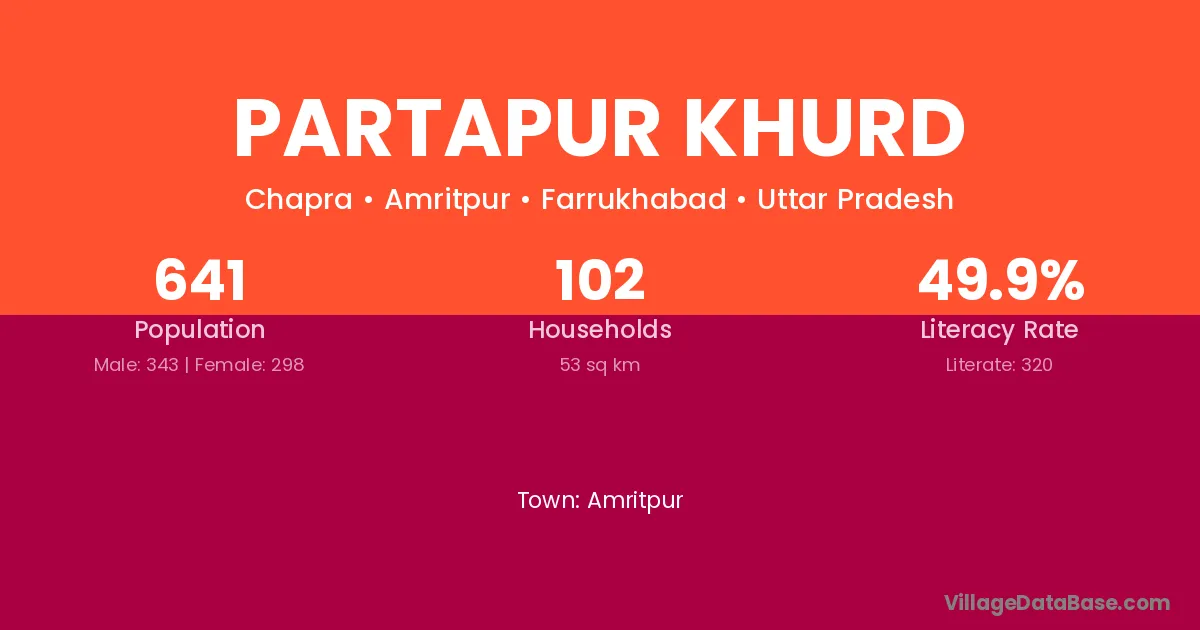 Partapur Khurd village has a total population of 641 people, of which 343 are males and 298 are females.