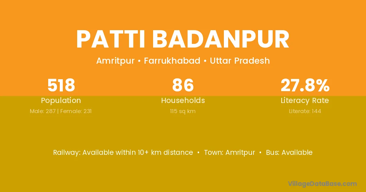 Patti Badanpur village has a total population of 518 people, of which 287 are males and 231 are females.