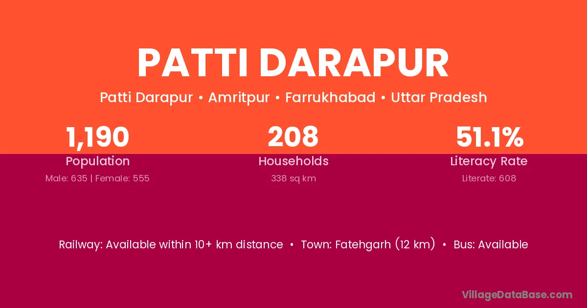 Fatehgarh (12 km) is the nearest town to Patti Darapur village for major economic activities and is located approximately 12 km away.