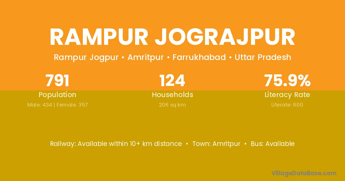 Rampur Jograjpur village has a total population of 791 people, of which 434 are males and 357 are females.
