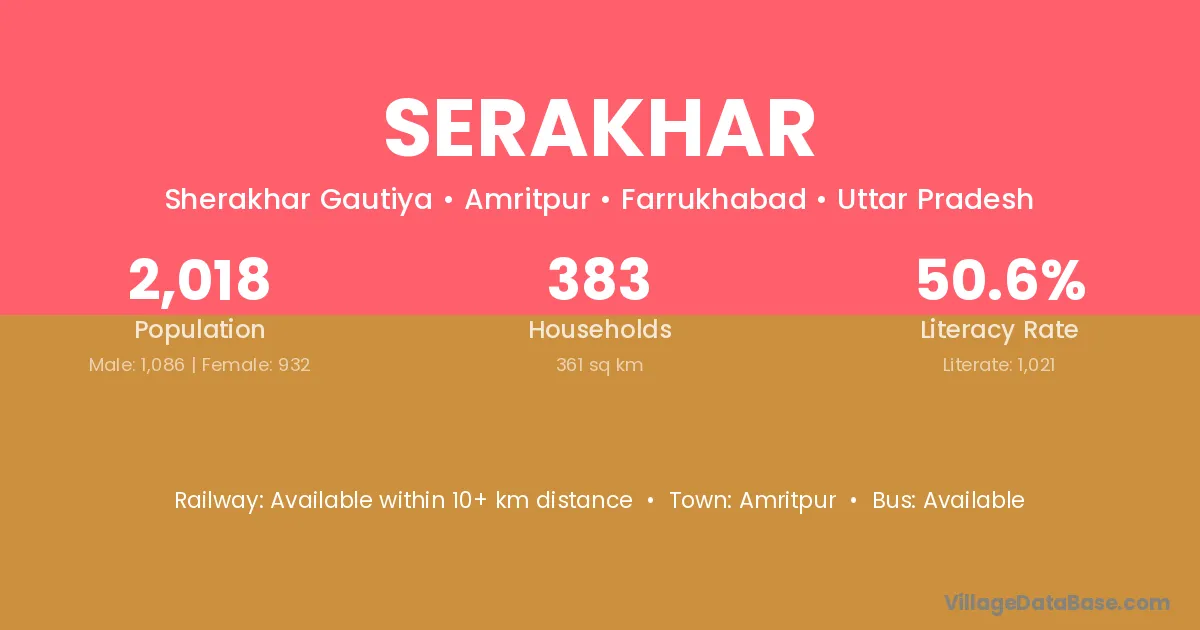 Serakhar village has a total population of 2,018 people, of which 1,086 are males and 932 are females.