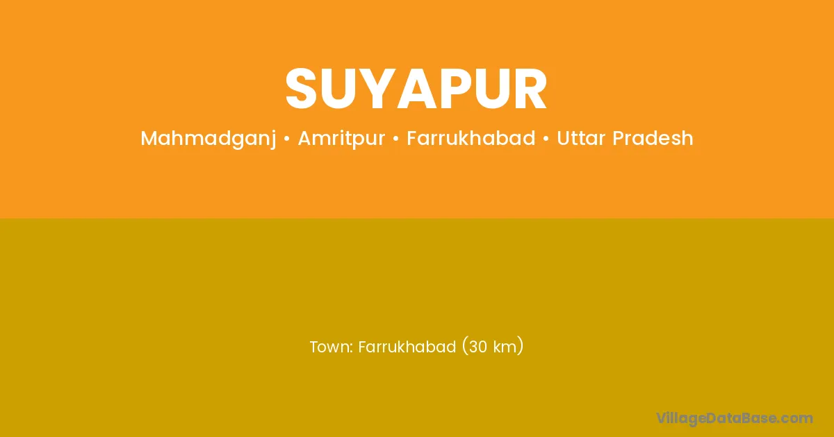 Farrukhabad (30 km) is the nearest town to Suyapur village for major economic activities and is located approximately 30 km away.