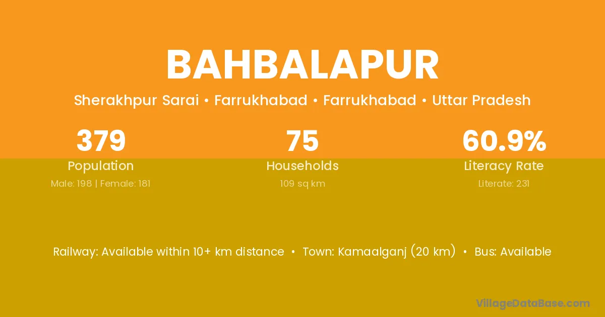 Kamaalganj (20 km) is the nearest town to Bahbalapur village for major economic activities and is located approximately 20 km away.