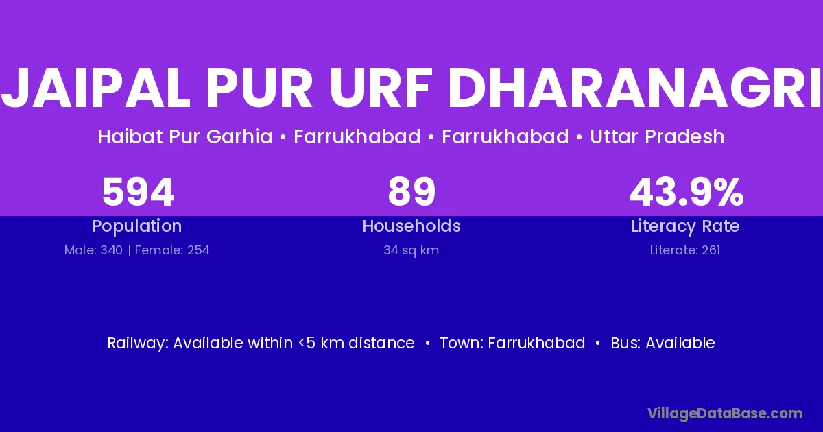 Farrukhabad is the nearest town to Jaipal Pur Urf Dharanagri village for major economic activities