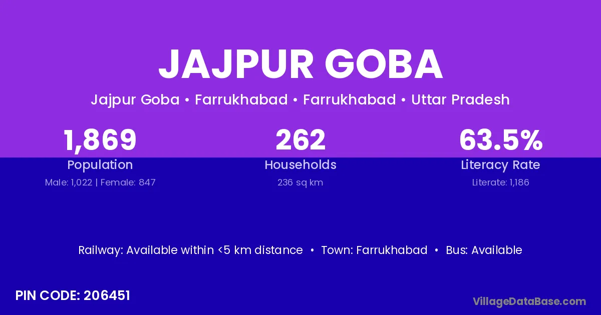 Farrukhabad is the nearest town to Jajpur Goba village for major economic activities