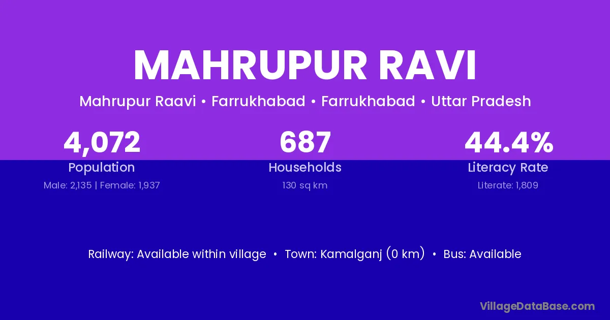 Kamalganj (0 km) is the nearest town to Mahrupur Ravi village for major economic activities