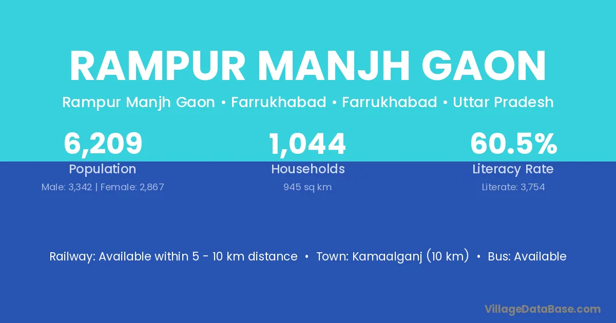 Kamaalganj (10 km) is the nearest town to Rampur Manjh Gaon village for major economic activities and is located approximately 10 km away.