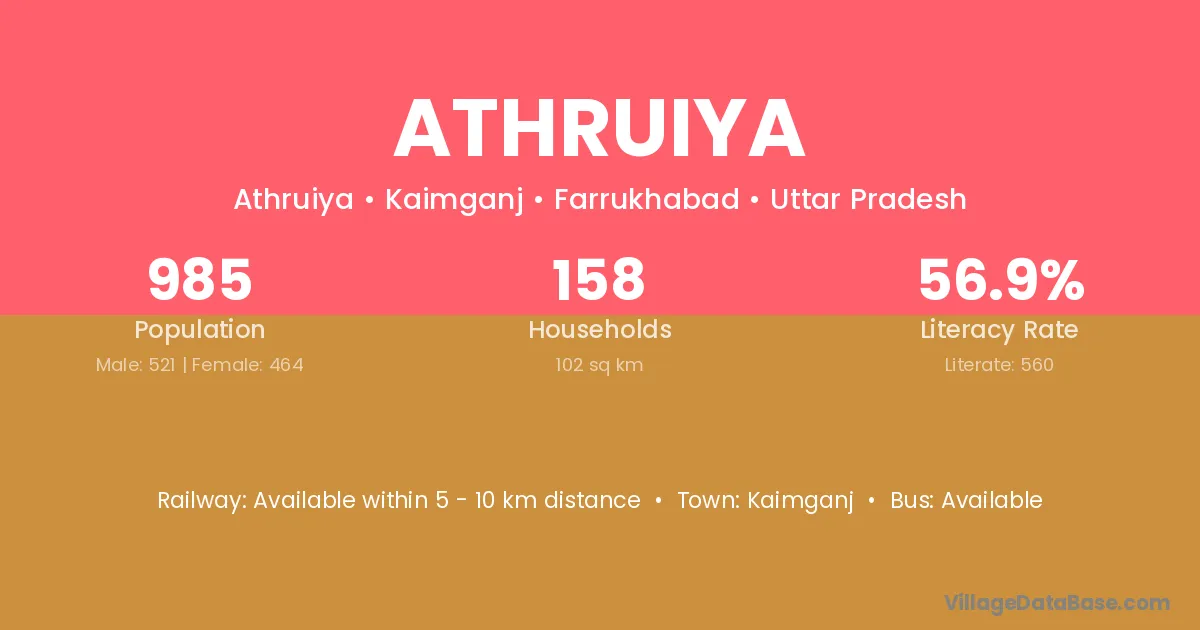 Athruiya village has a total population of 985 people, of which 521 are males and 464 are females.