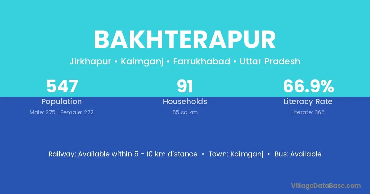 Bakhterapur village has a total population of 547 people, of which 275 are males and 272 are females.