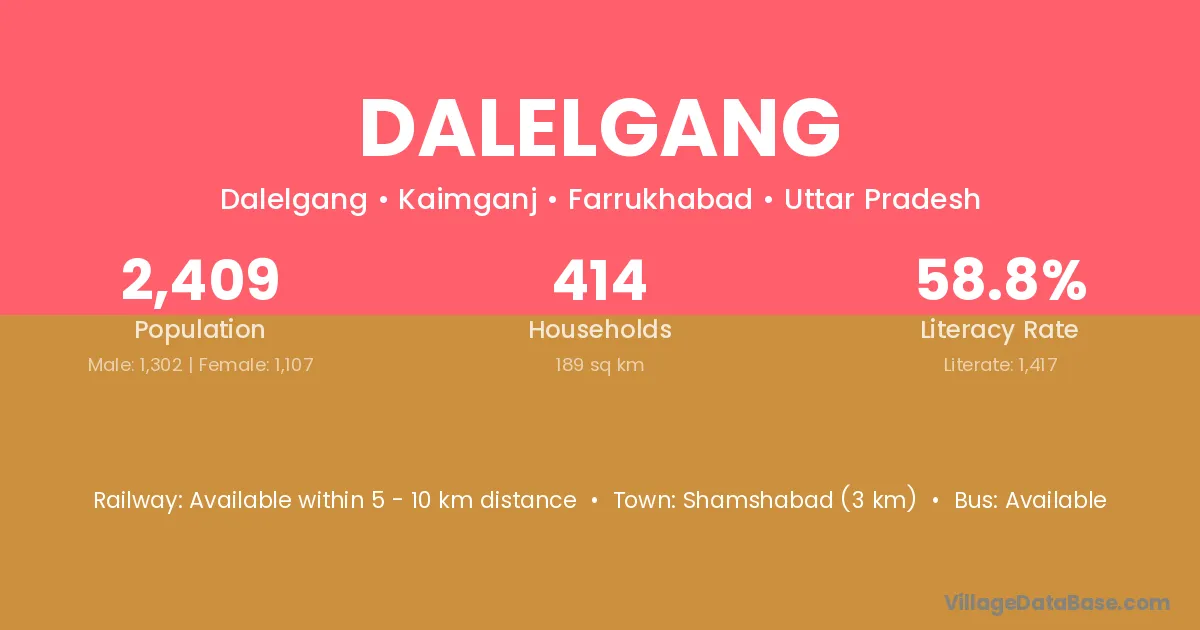 Shamshabad (3 km) is the nearest town to Dalelgang village for major economic activities and is located approximately 3 km away.