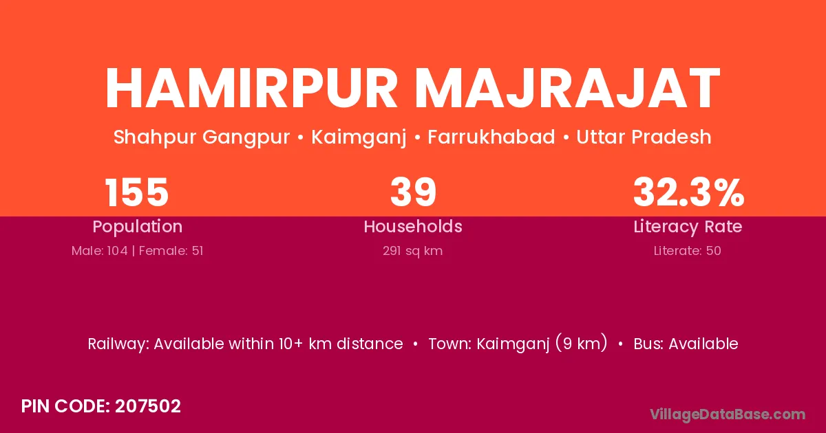Kaimganj (9 km) is the nearest town to Hamirpur Majrajat village for major economic activities and is located approximately 9 km away.